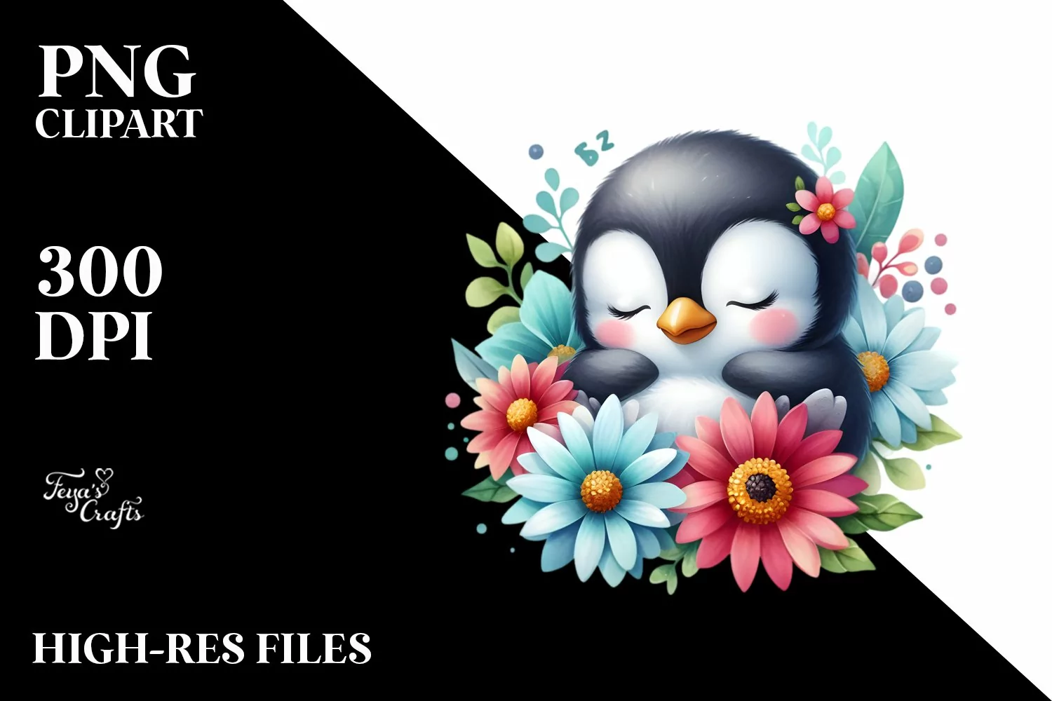 Colorful Watercolor Cute Baby Penguin | Clipart