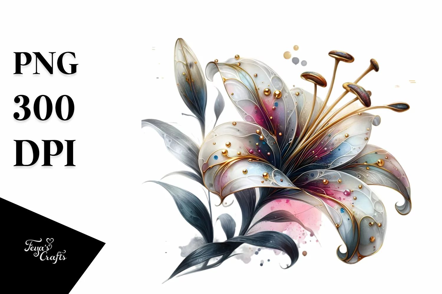 Sticker Summer Flower Glossy Golden Detailed Lily Png Glass Sublimation