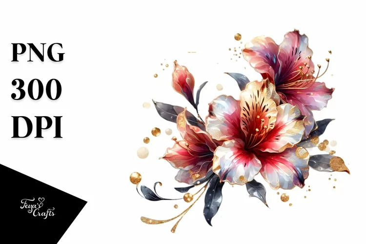 Watercolor Sticker Summer Flower Golden Splash Abstract Png Sublimation Azalea