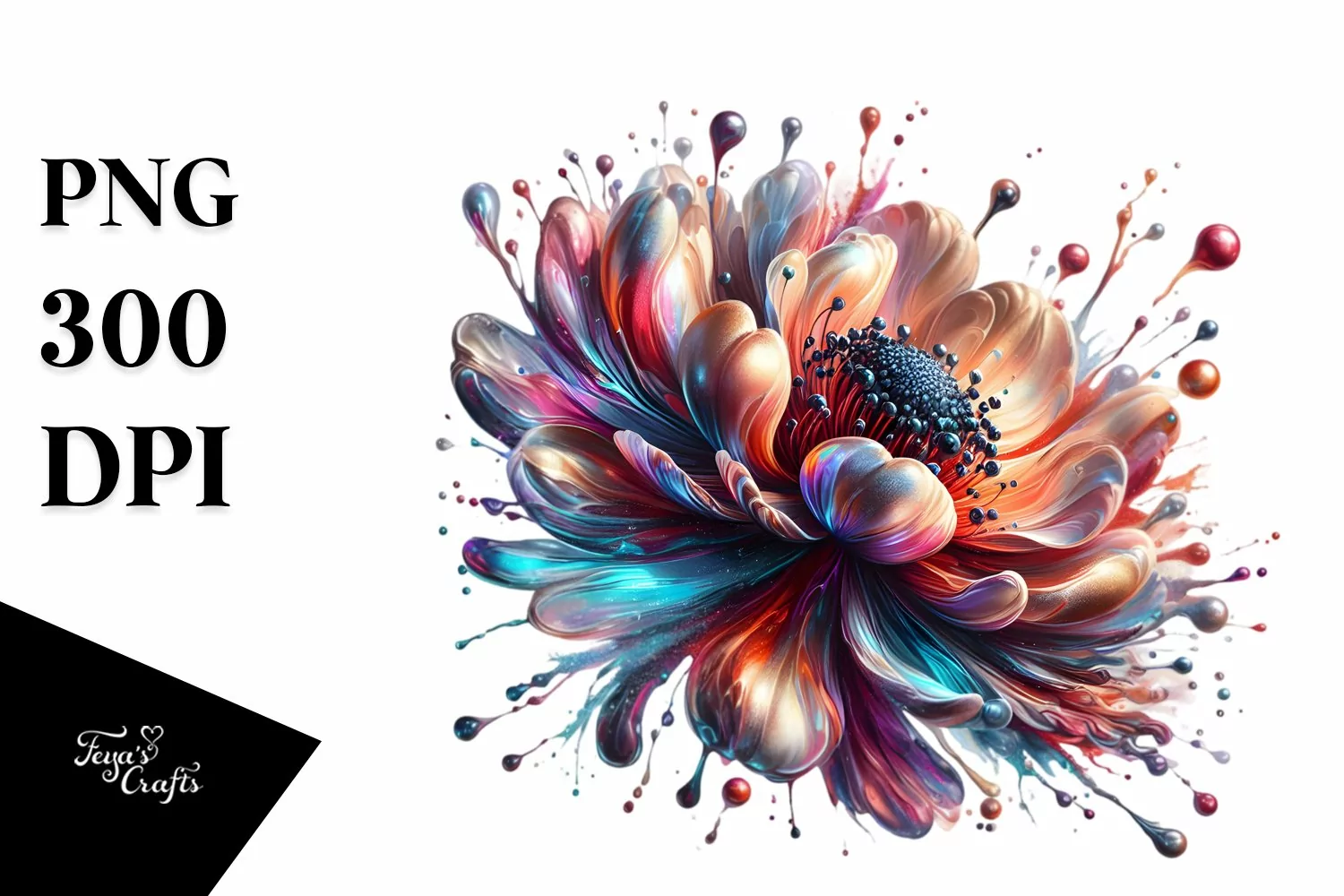 Sticker Summer Flower Shiny Abstract Anemone Png Sublimation Whitebackground Shinymaterial