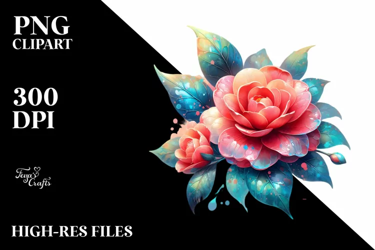 Watercolor Sticker Summer Flower Glossy Splashes Png Glass Sublimation Camellia