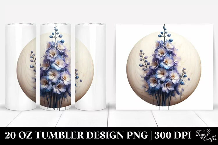 Watercolor Sticker Summer Easter Flower Wood Glass Sublimation Tumbler Delphinium