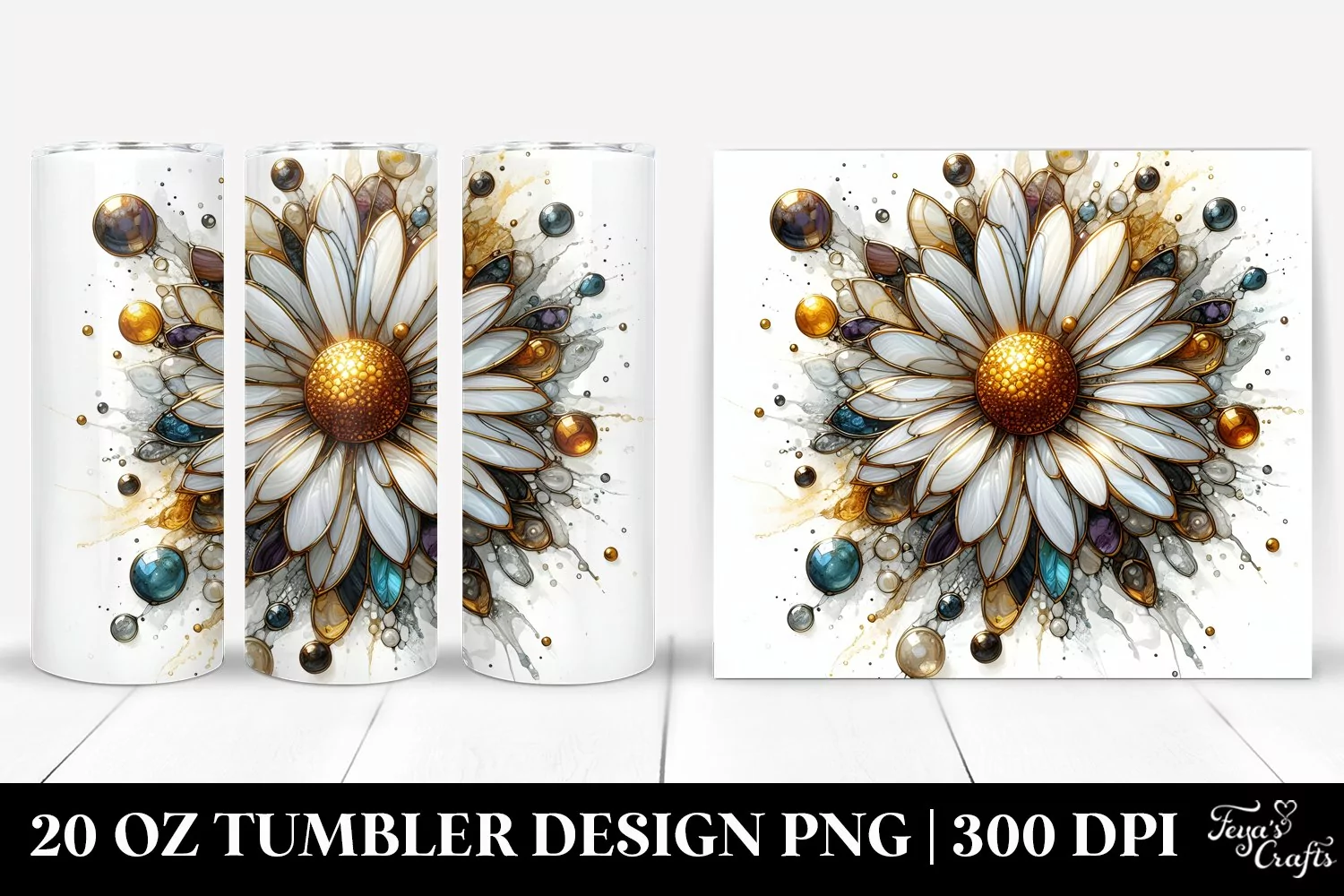 Stained Daisy with Golden Marble | 20 Oz Tumbler example image 1