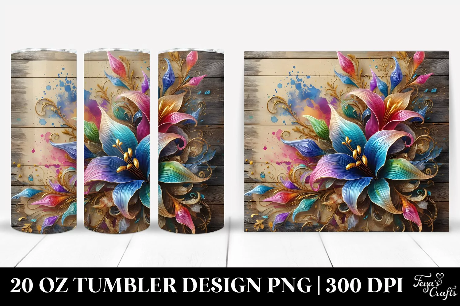 Sticker Summer Easter Colorful Flower Sublimation Tumbler Lobelia Glassmaterial Woodenbackground