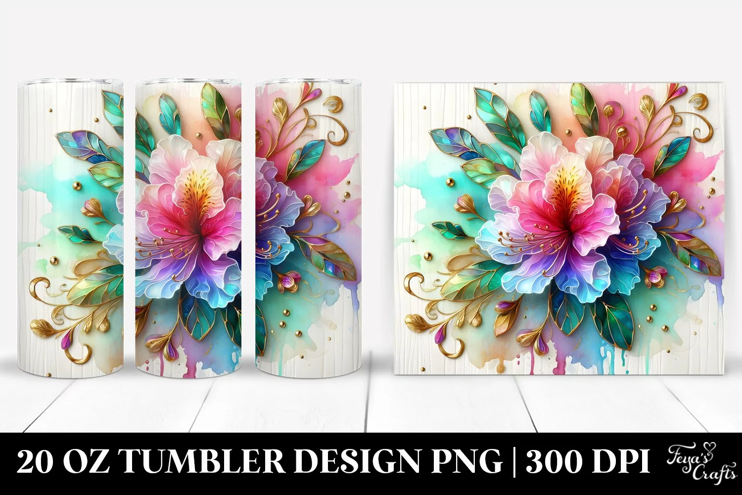 Sticker Summer Easter Colorful Flower Rhododendron Sublimation Tumbler Glassmaterial Whitewoodenbackground