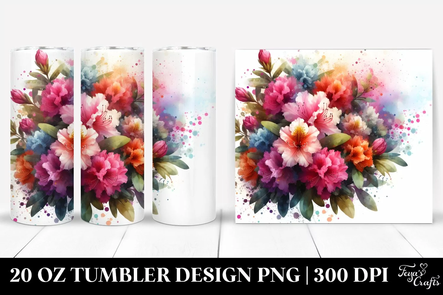 Watercolor Sticker Summer Easter Flower Abstract Vibrant Rhododendron Sublimation Tumbler
