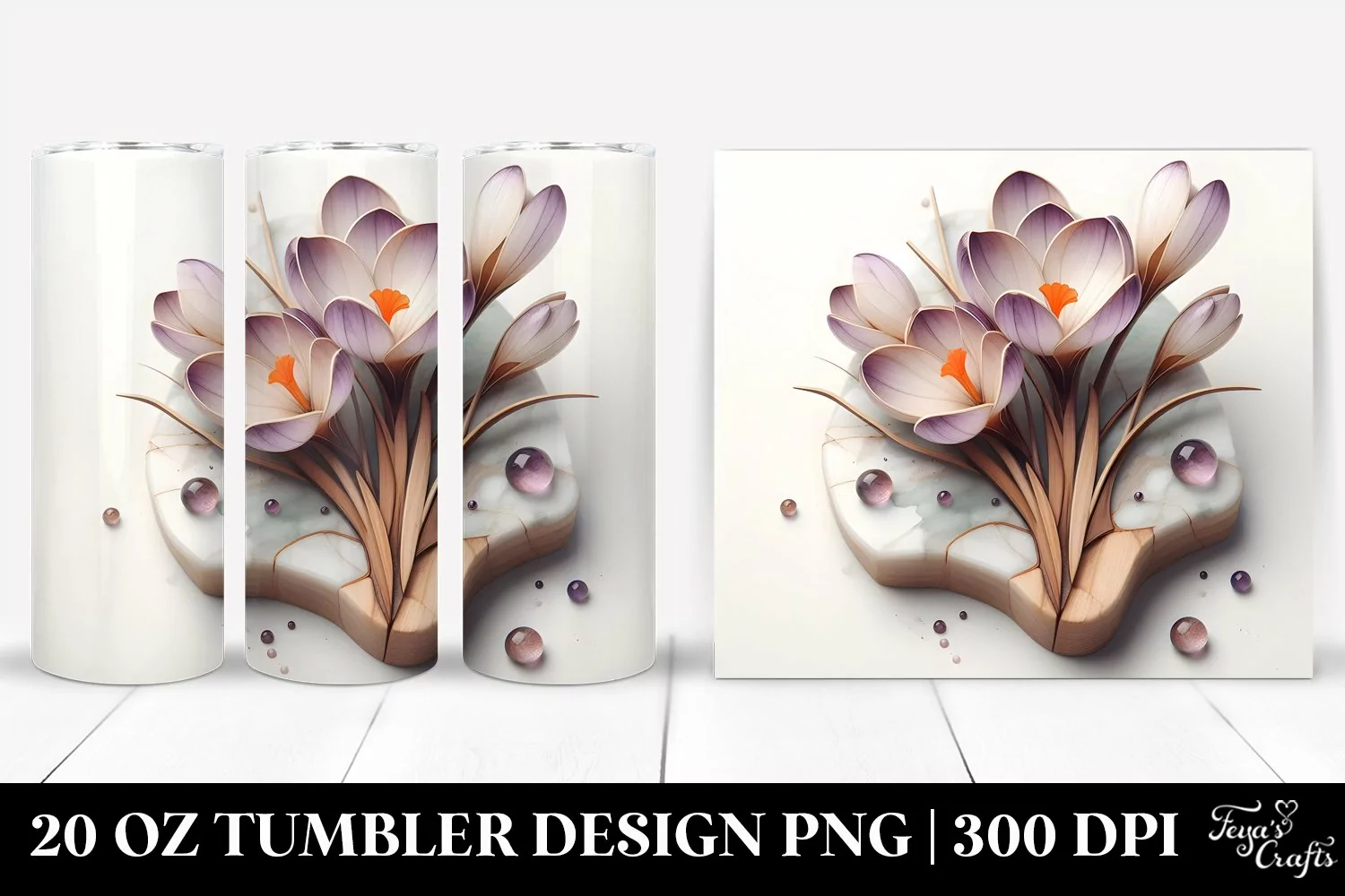 Sticker Summer Easter Flower Wooden Glass Sublimation Tumbler Crocus Stainedglass