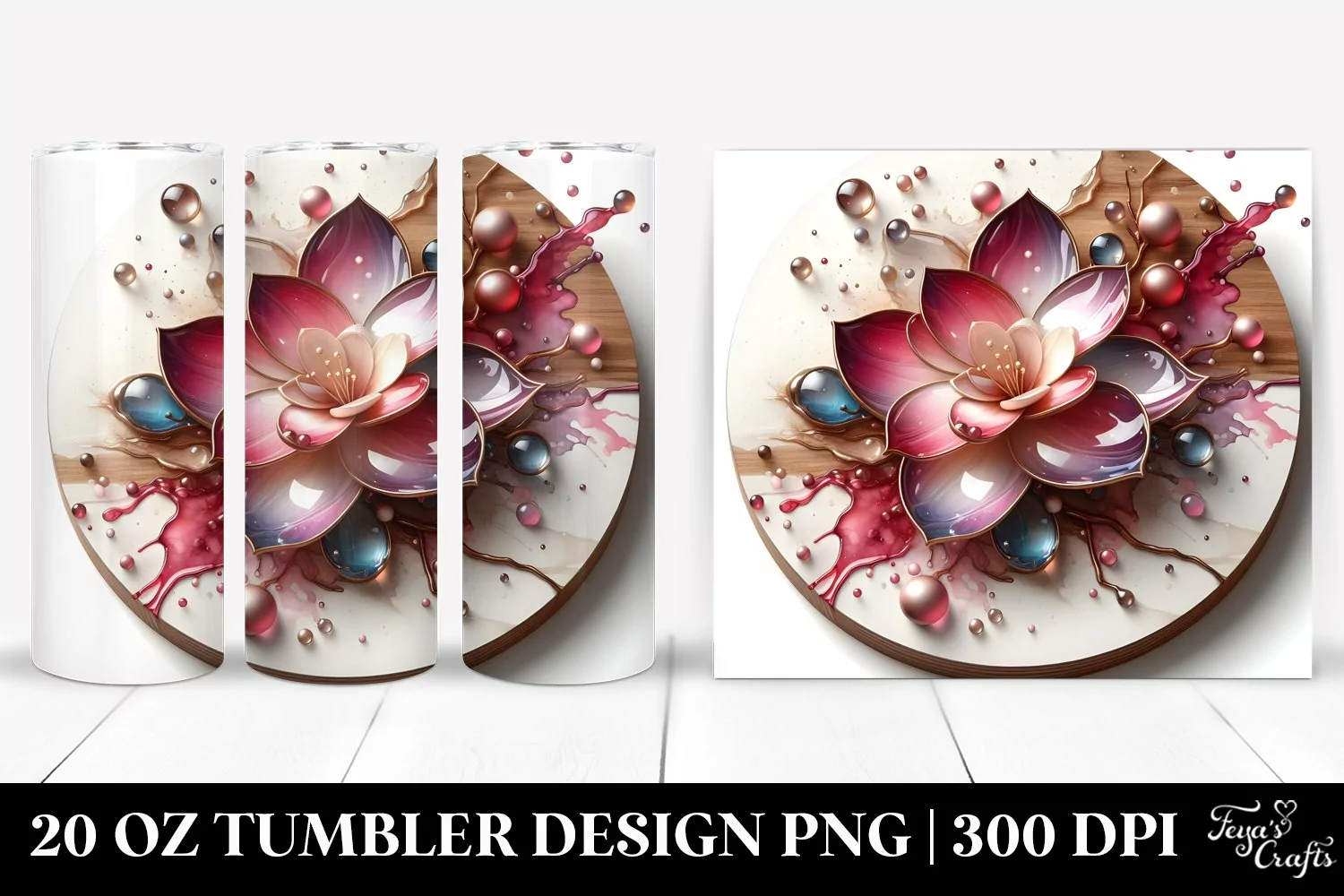 Sticker Summer Easter Flower Glossy Abstract Glass Sublimation Tumbler Gardenia