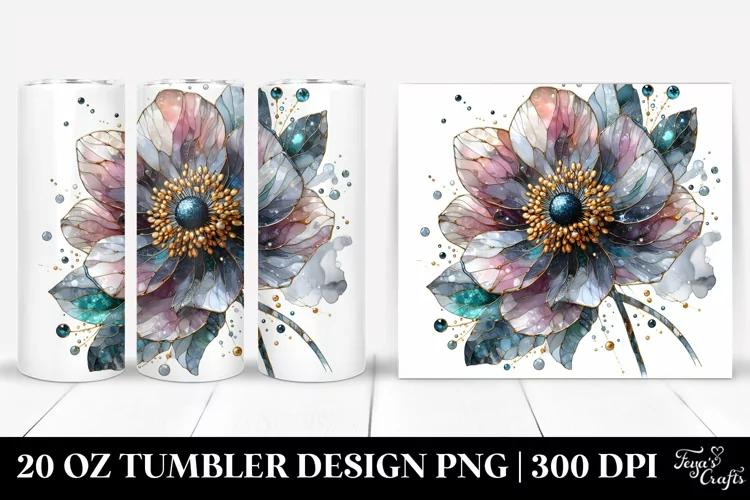 Sticker Summer Easter Flower Shiny Golden Anemone Sublimation Tumbler Stainedglass