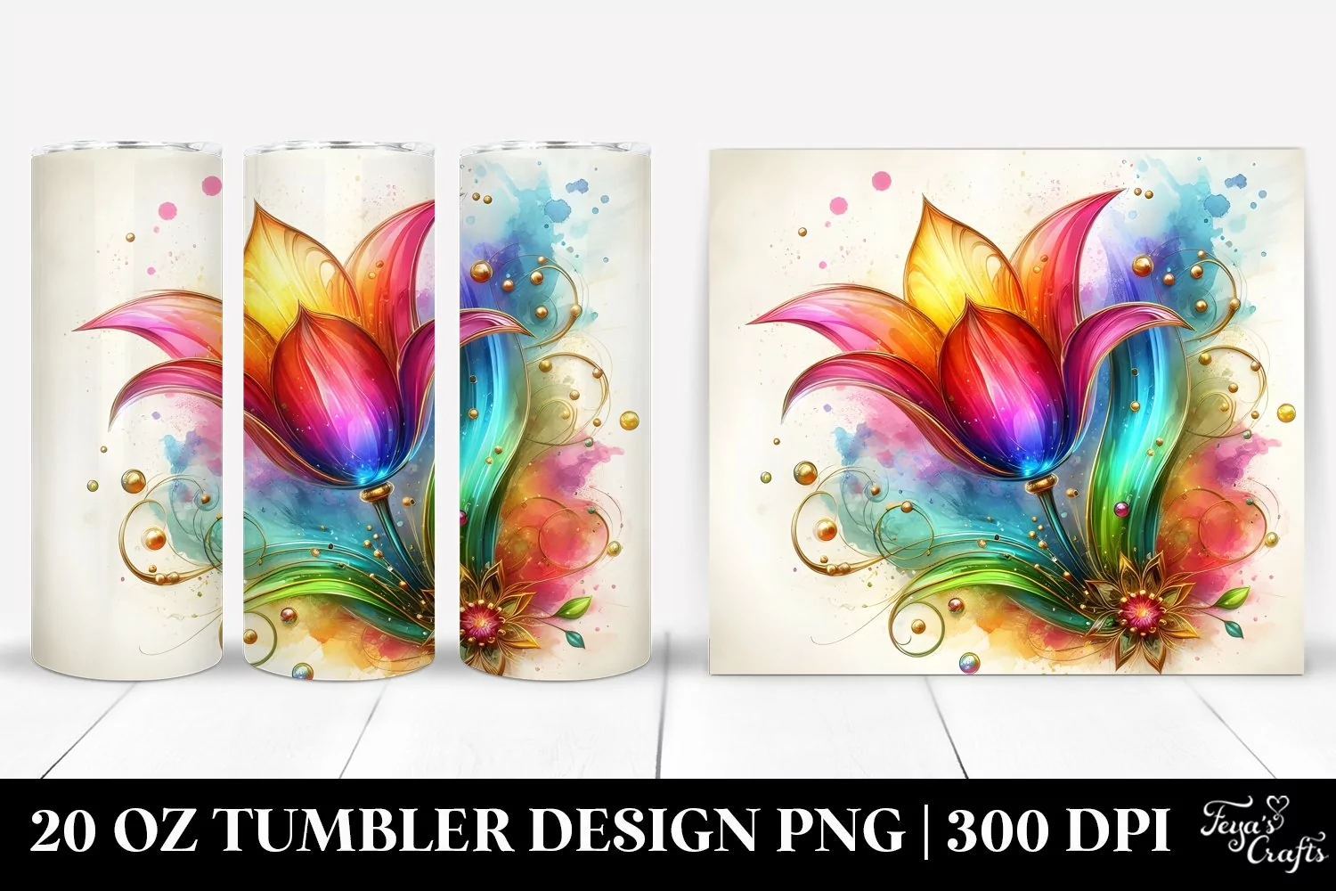 Sticker Summer Easter Colorful Flower Glass Tulip Sublimation Tumbler Watercolorsplash