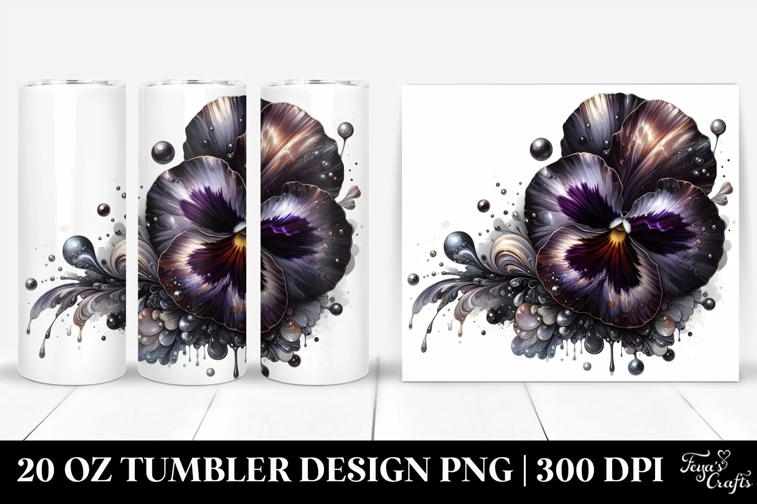 Detailed Glossy Pansy with Metallic Insertions | 20 oz example image 1