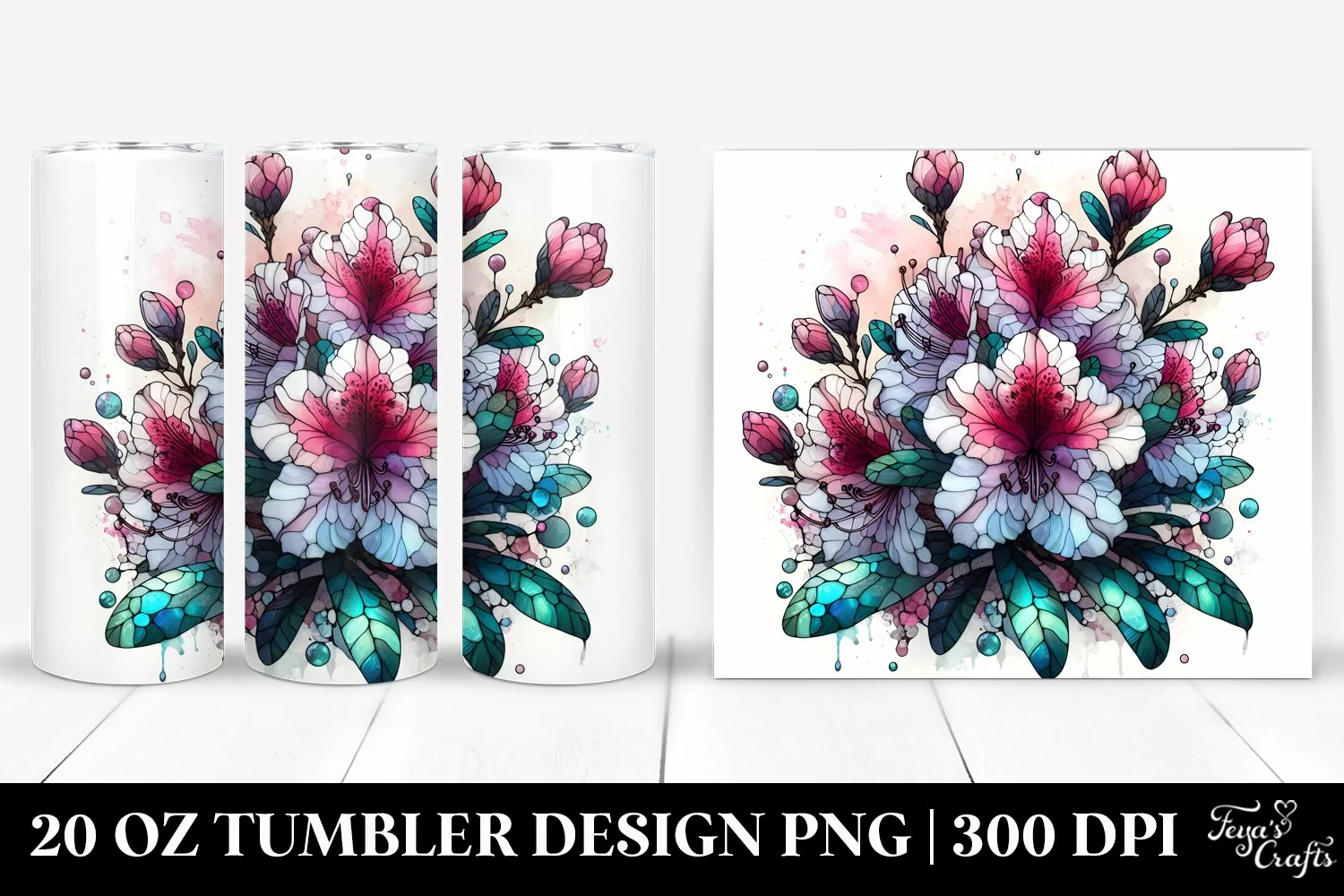 Sticker Summer Easter Flower Detailed Glass Rhododendron Sublimation Tumbler Stainedglass