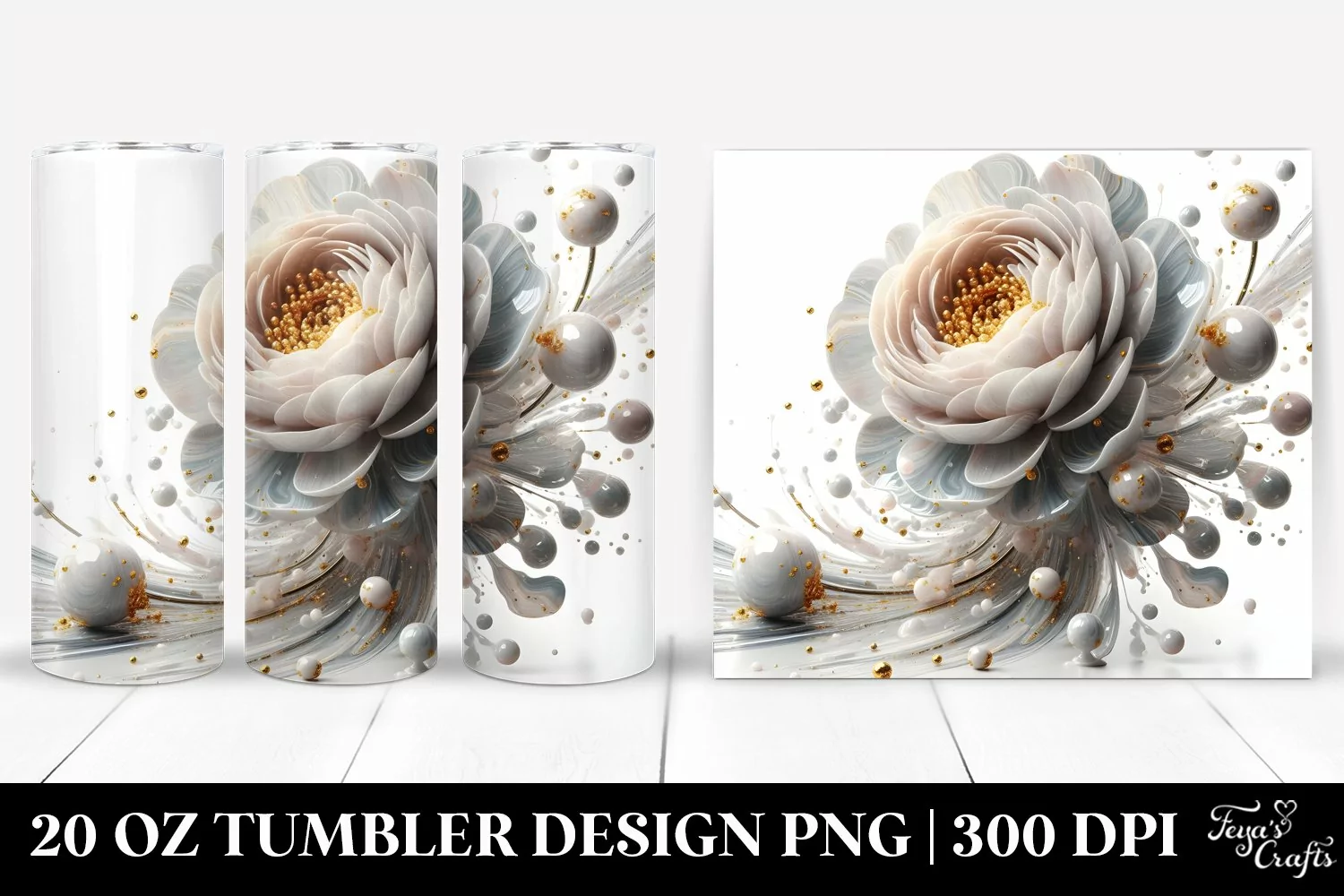 Similar Design Products to Abstract Glossy Ranunculus Golden Insertions | 20 oz