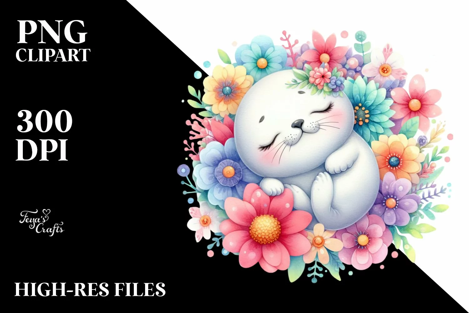 Sticker Summer Cute Flower Seal Png Sublimation Sleeping Centered