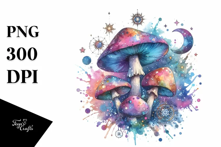 Similar Design Products to Magical Celestial Watercolor Mushroom Clipart