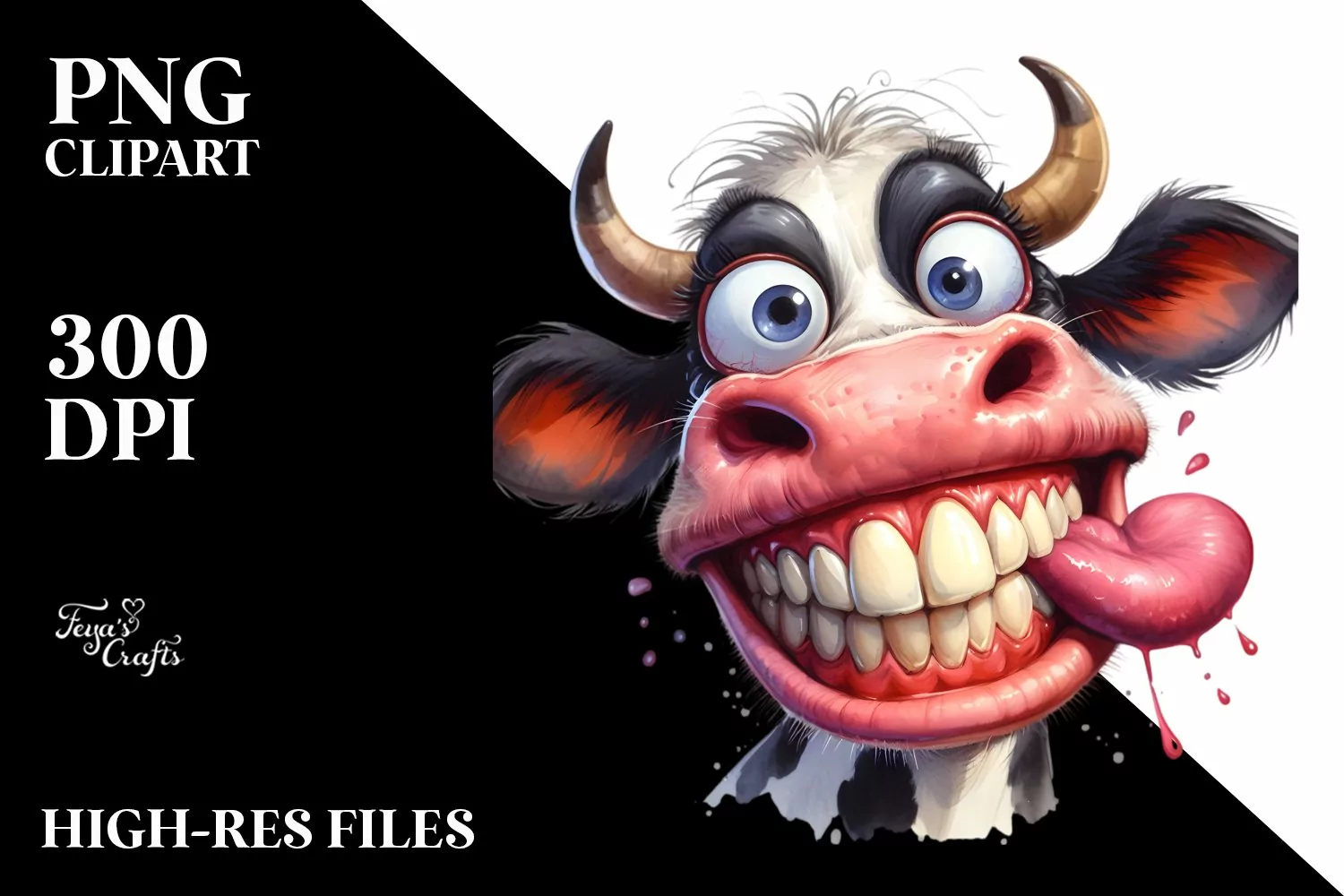 Cow Watercolor Crazy Funny Cow Portrait | Clipart