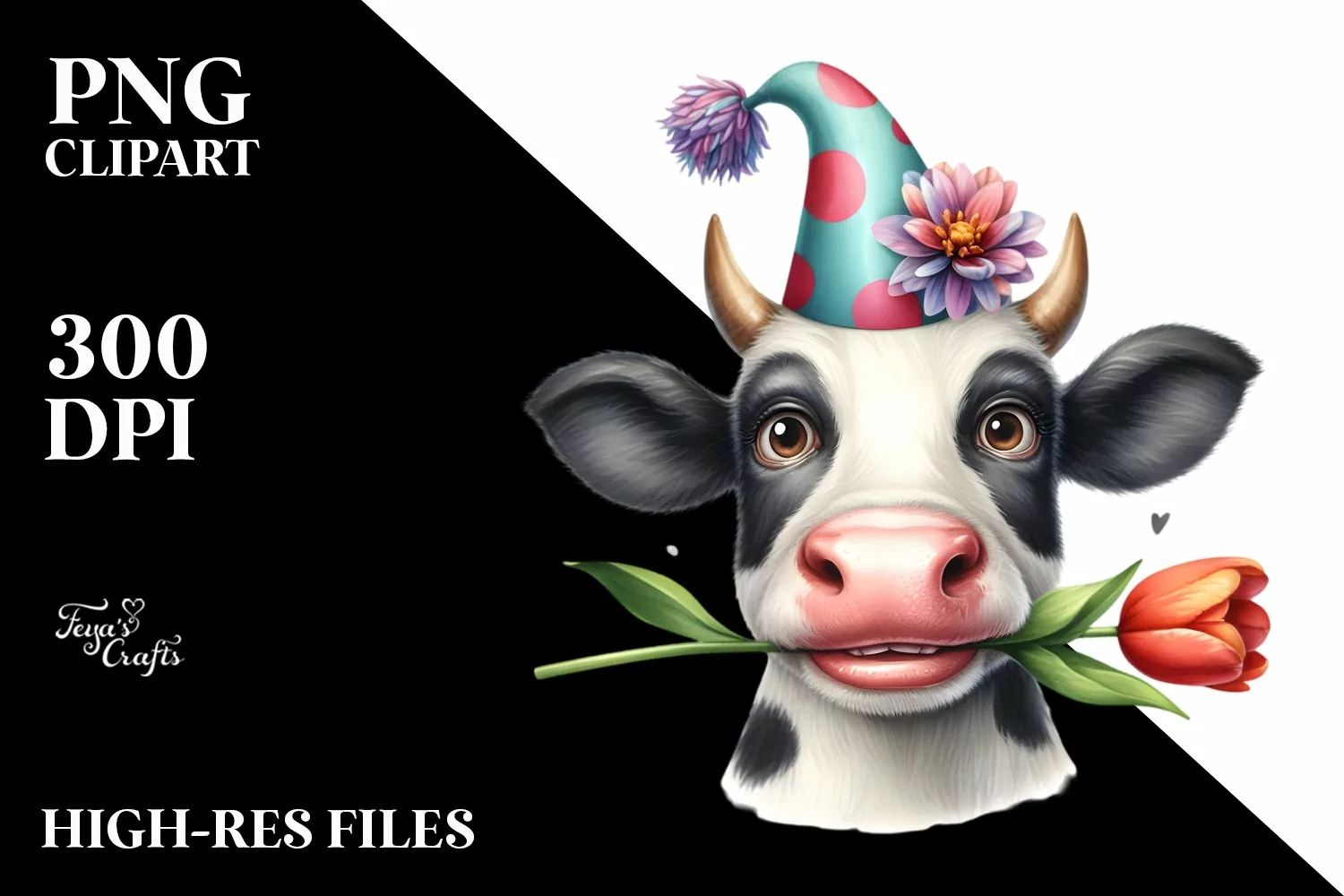 Clipart Rose Portrait Cow Tulip Bored Whitebackground Bigeyes Partyhat Largegoofysmile