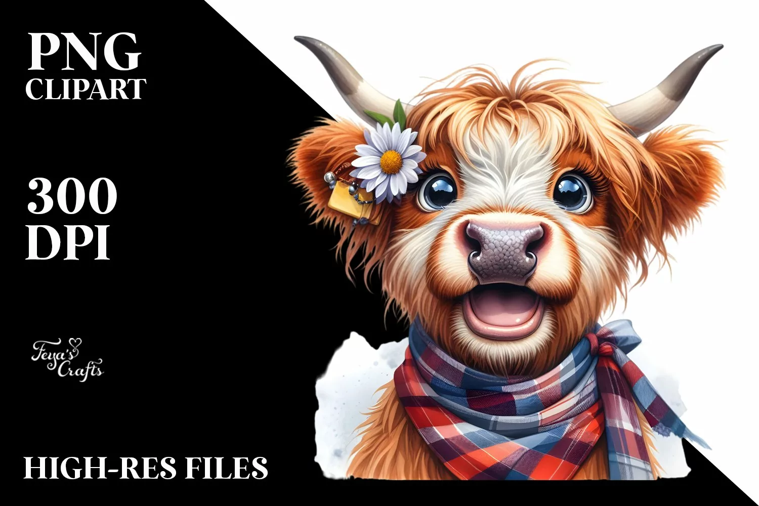 Cow Excited Highland Cow Portrait | Sublimation | Clipart example image 1