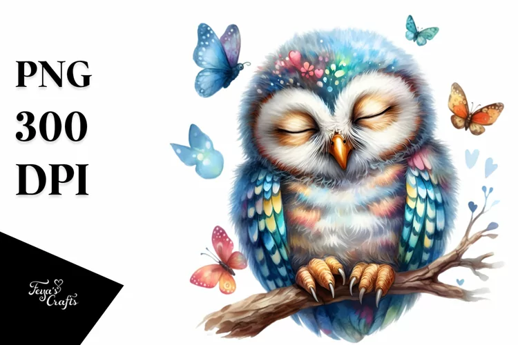 Watercolor Sticker Summer Baby Flower Vibrant Owl Png Sublimation Sleeping