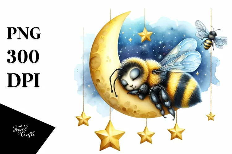 Watercolor Summer Easter Vibrant Moon Mothersday Sleeping Whitebackground Babybee Hangingstars