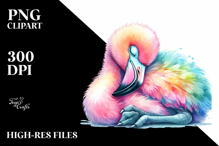 Watercolor Sticker Summer Easter Clipart Vibrant Sublimation Sleeping Babyflamingo Elementsnottouchingthecanvasedges