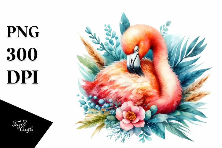 Watercolor Elements Sticker Colorful Flower Clipart Vibrant Flamingo Sleeping