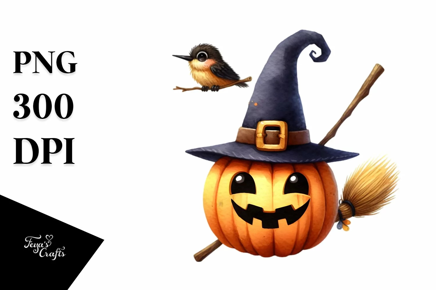 Funny Watercolor Halloween Broom | Sublimation Clipart