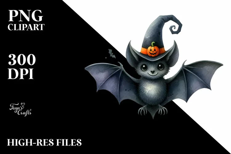 Funny Watercolor Halloween Clipart Bat Sublimation Centered