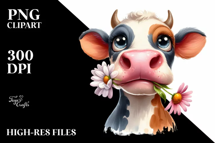 Flower Clipart Expressive Cow Thoughtful Whitebackground Bigeyes Caricature-like Bigteeth Elementsnottouchingthecanvasedges