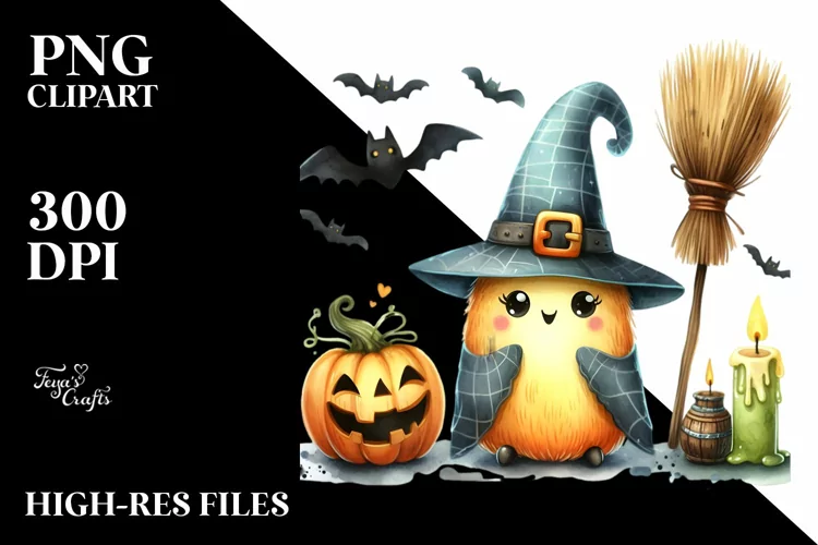 Similar Design Products to Funny Watercolor Cute Halloween Broom Clipart