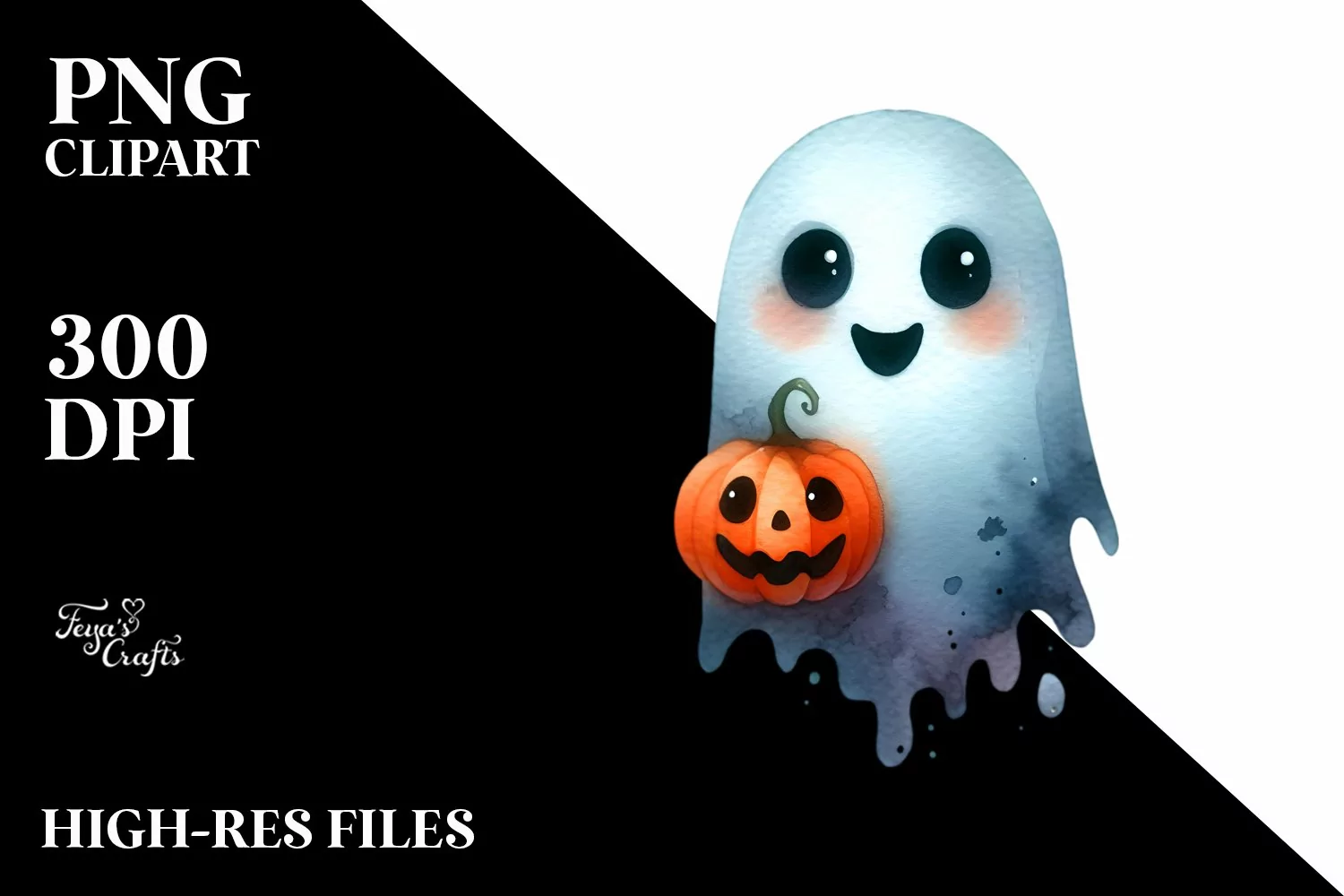 Funny Halloween Ghost Watercolor Clipart