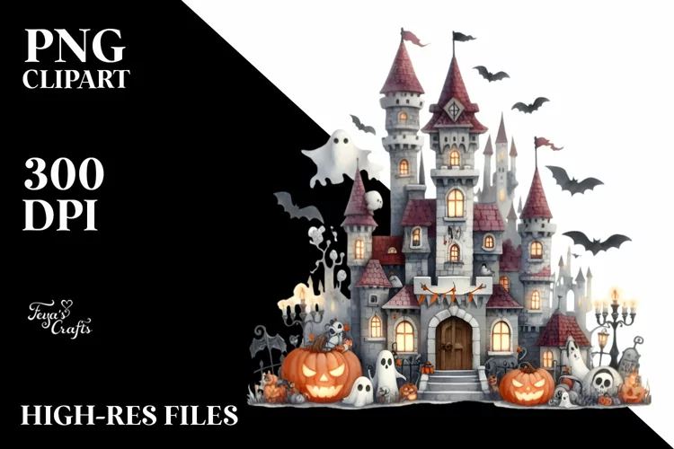 Similar Design Products to Funny Watercolor Halloween Castle Clipart