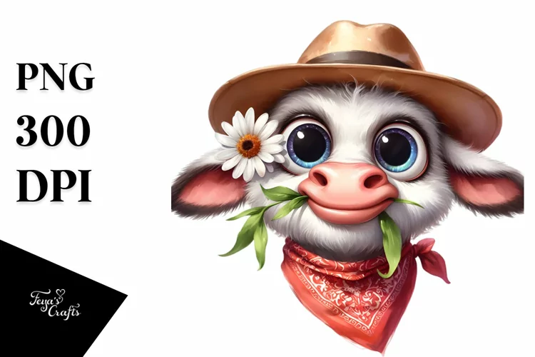 Watercolor Clipart Expressive Ox Sublimation Confused Bigeyes Caricature-like Elementsnottouchingthecanvasedges Hatbandana