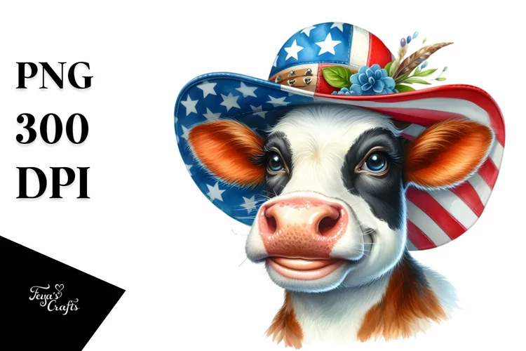 Clipart Sublimation Sunhat Enthusiastic Bigeyes Usaflagcolors Goofysmile Elementsnottouchingthecanvasedges Cowportrait