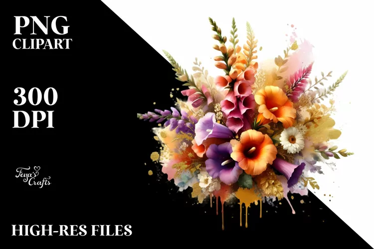 Watercolor Splash Abstract Vibrant Bouquet Png Sublimation Whitebackground Foxglove Goldfoil