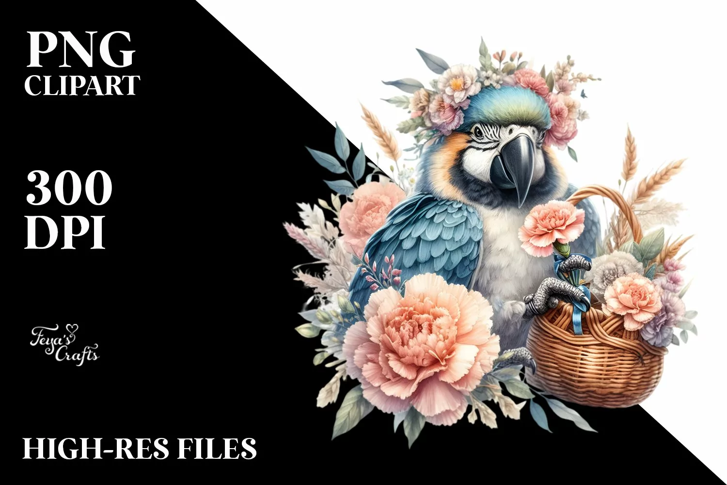 Sticker Whimsical Summer Baby Colorful Flower Png Sublimation Carnation Macaw