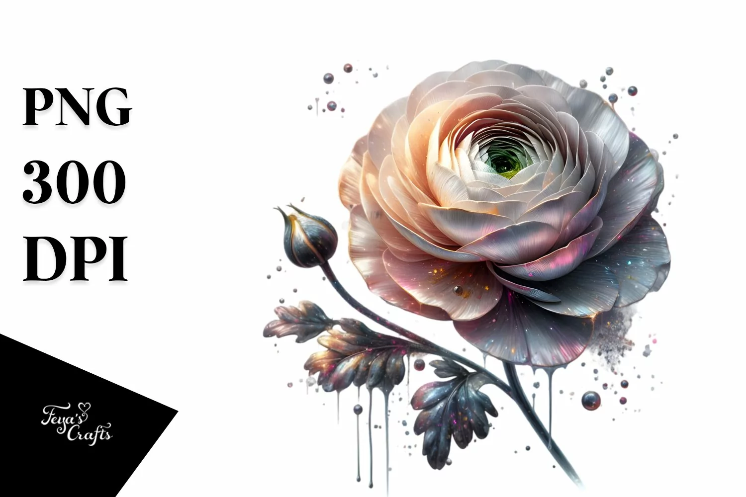 Shiny Ranunculus with Metallic Accents | Watercolor Design example image 1
