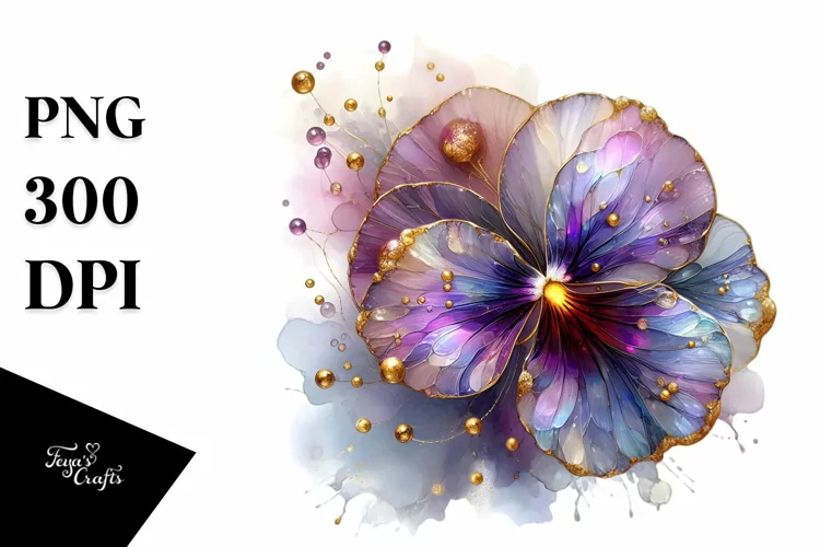 Sticker Summer Flower Shiny Abstract Png Sublimation Pansy Glassmaterial Goldeninsertions