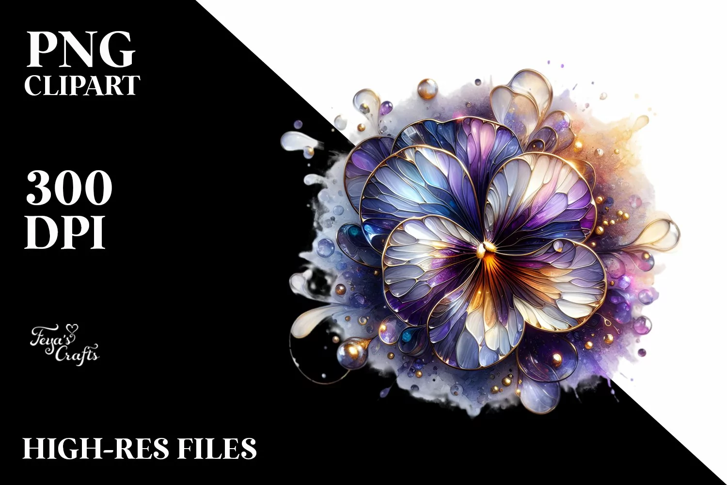 Sticker Summer Flower Shiny Abstract Png Sublimation Pansy Glassmaterial Goldeninsertions
