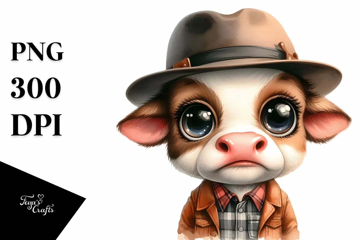Watercolor Baby Cow with Hat