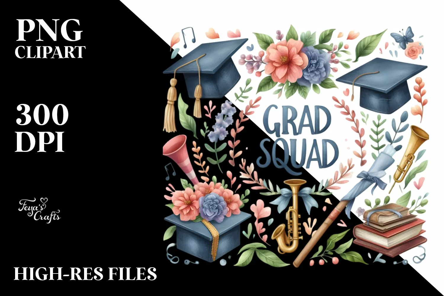 Similar Design Products to Vibrant Grad Squad Watercolor | Clipart