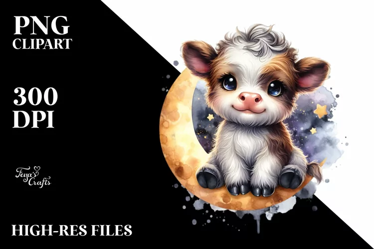 Smiling Baby Highland Cow | Moon Splash example image 1