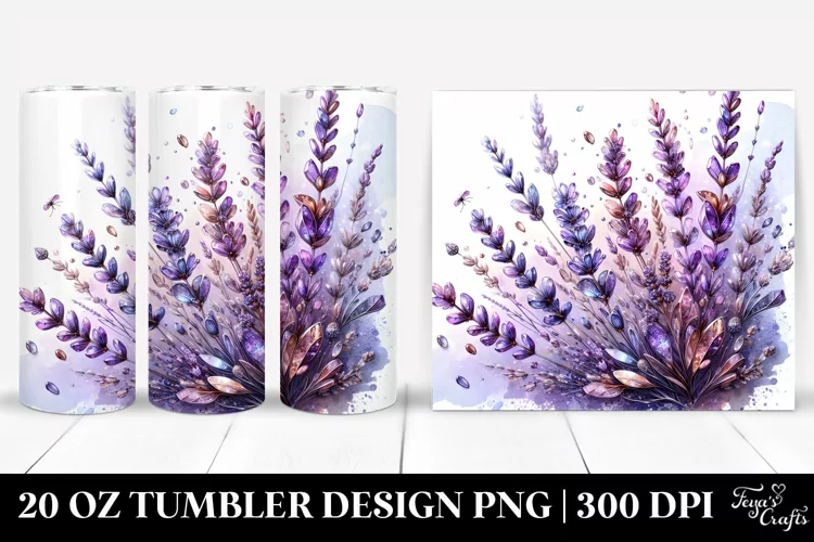 Watercolor Sticker Summer Easter Flower Lavender Glass Metallic Sublimation Tumbler