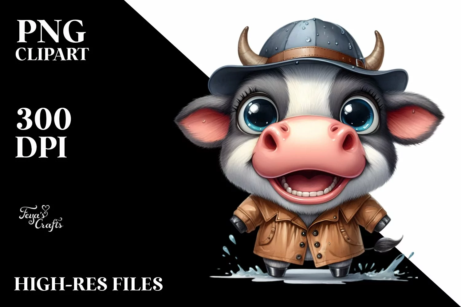Similar Design Products to Cow Hat Standing Wearing Raincoat Excited Clipart