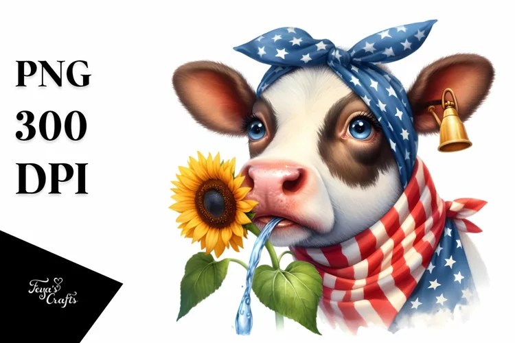Cow Portrait Wearing Bandana | Clipart example image 1