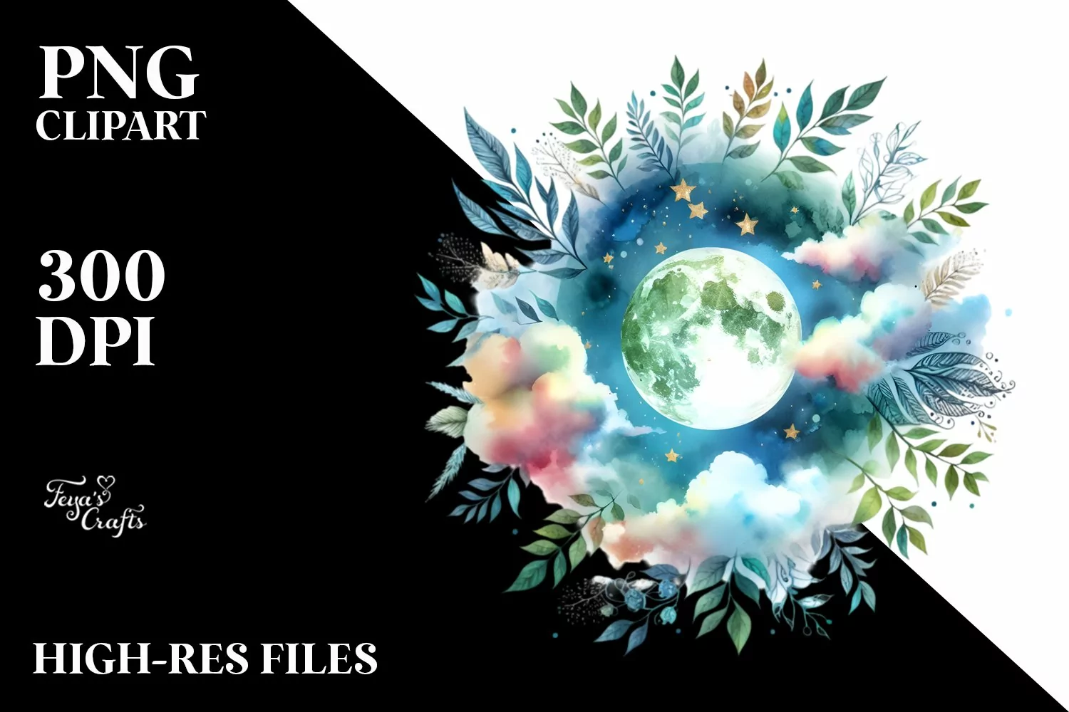 Similar Design Products to Wimsical Moon With Foliage | Clipart