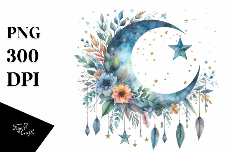 Similar Design Products to Boho Moon With Foliage Stars | Clipart