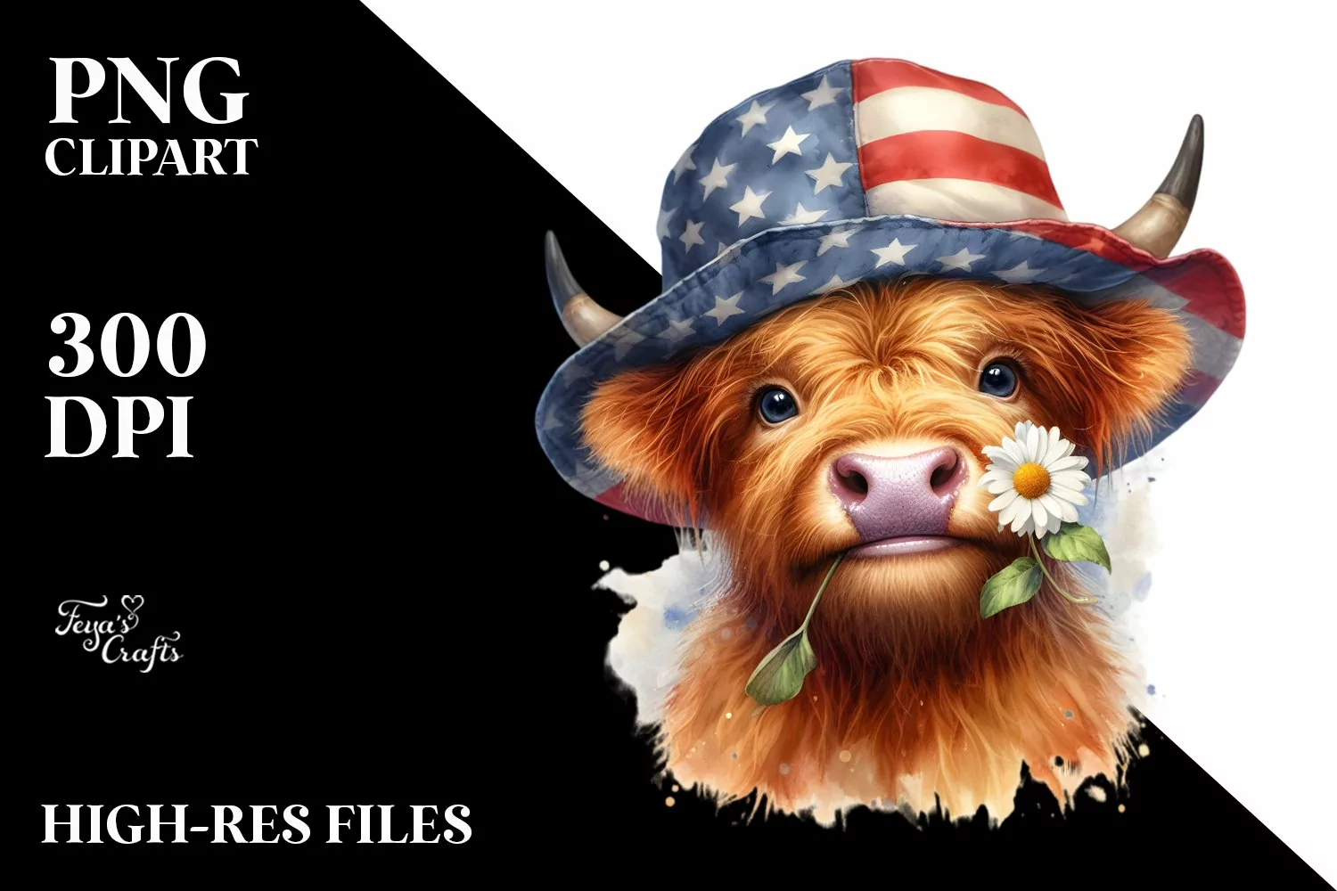 Sticker Summer Flower Png Sublimation Whitebackground Sunhat Bigeyes Usaflagcolors Highlandcowportrait