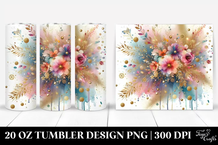 Sticker Summer Easter Colorful Flower Sublimation Tumbler Watercolorsplash Goldenfoil Gliterrybackground