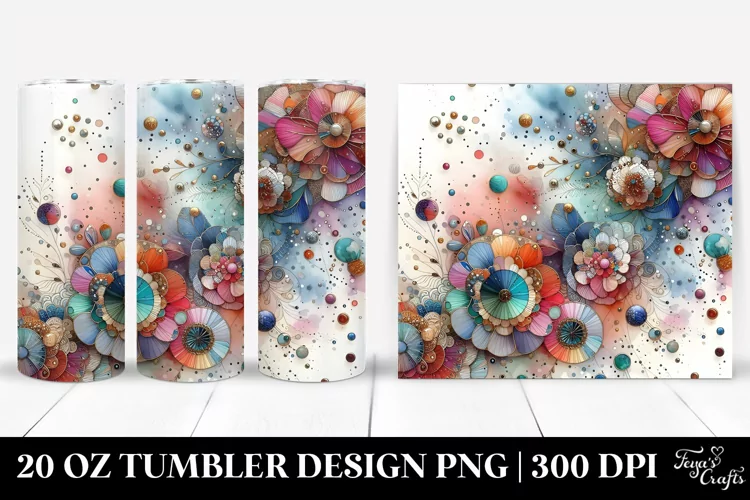 Watercolor Sticker Summer Easter Colorful Flower Background Sublimation Tumbler Metalicinsertions